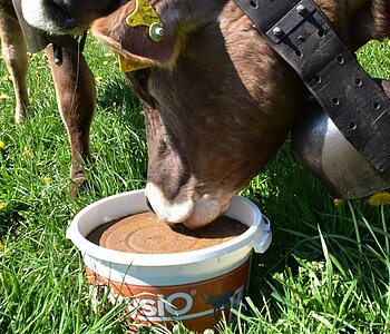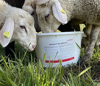 Le mélange de plantes PARAclean, connu et éprouvé, est également disponible sous forme de seau à lécher pour les animaux au pâturage.