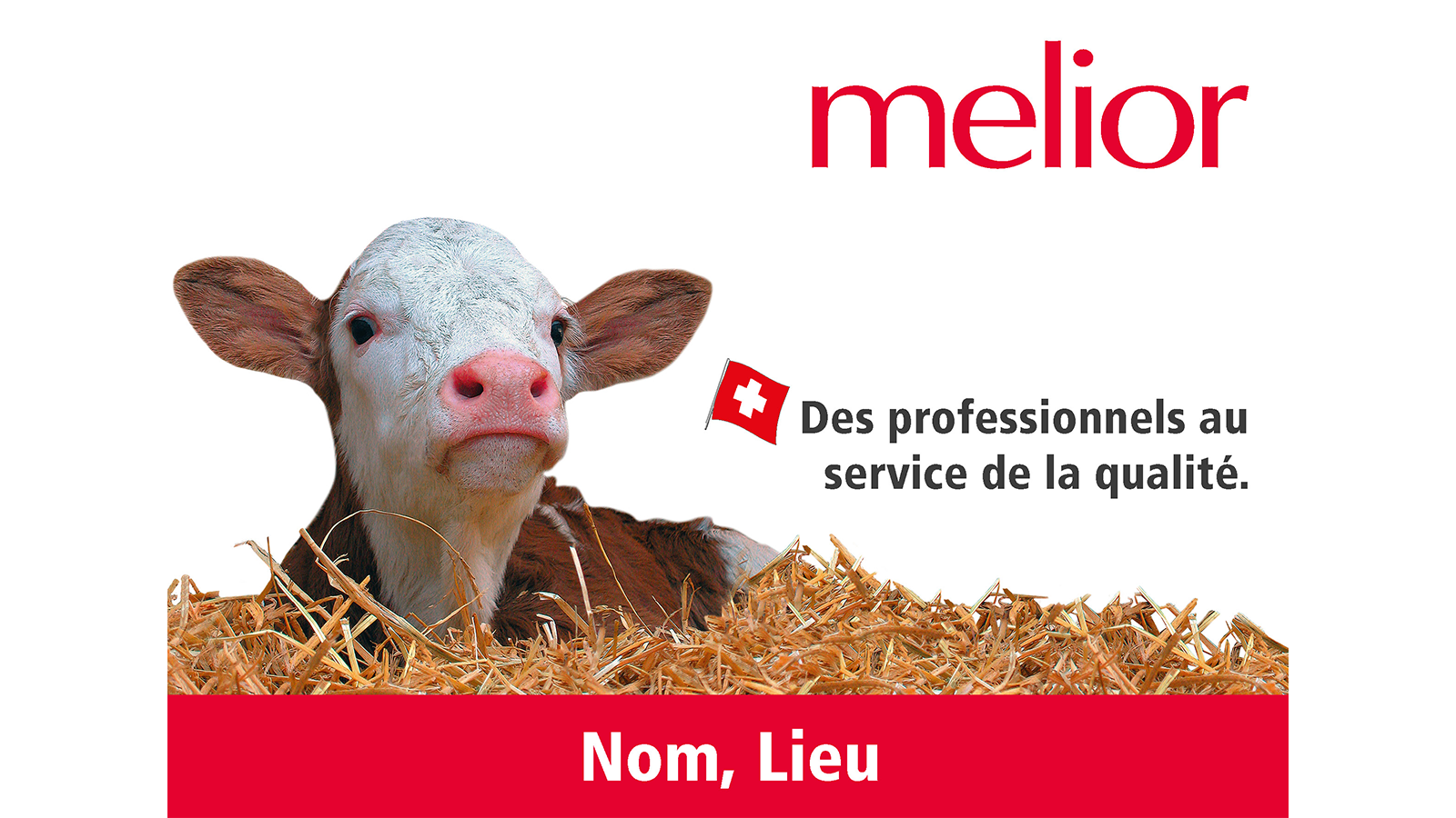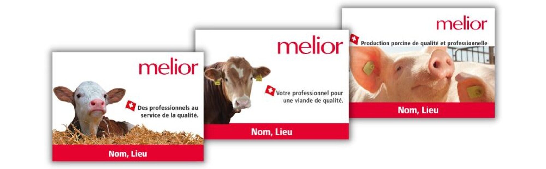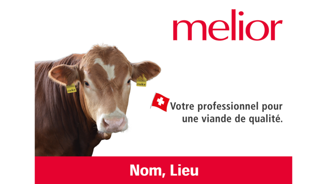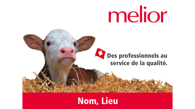 Pour les exploitations d'engraissement de bovins, de veaux et de porcs, nous proposons des panneaux de cour personnalisables au format 80 × 50 cm. Les panneaux melior sans sujet ni texte sont également très appréciés.
